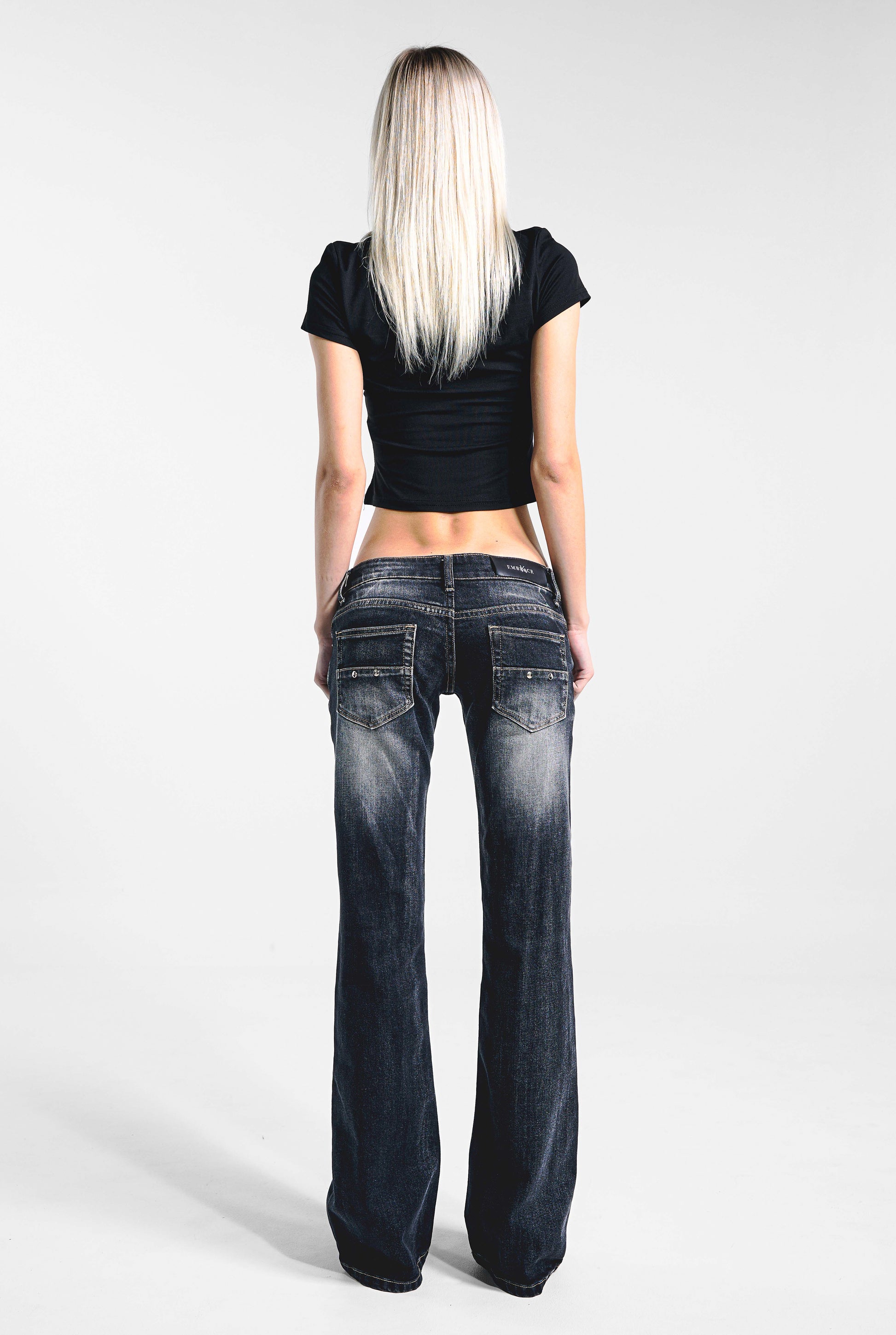 Slim Fit Flared-Low Rise Jeans - Washed Black